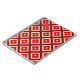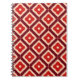 Un motif artistique sans couture comportant des formes géométriques rouges, orange et beige formant des motifs d'étoiles interconnectés.
