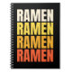 Design de texte simple et coloré avec du texte "Ramen, Ramen, Ramen, Ramen" dans des couleurs beige, jaune, orange et rouge