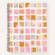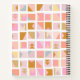 Un design mignon et amusant de petits carrés avec une variété de formes géométriques dans de jolies couleurs pastel rose, corail et jaune associées à une nuance dorée d'ambre.