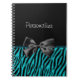 Un carnet mignon et à la mode d'impression de zèbre avec les rayures noires et turquoises modernes de zèbre et embelli avec un ruban noir girly imprimé. Personnalisez en ajoutant votre nom à cette conception chic des femmes de noir et de turquoise. Perfectionnez pour le fashionista élégant dans n'importe quelle fille de l'adolescence !