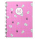 Motif plaid à la main rose avec crânes et araignées, parfait pour un carnet spirale Halloween coquette féminine personnalisée avec votre propre initiale.