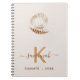 Arrière - plan beige. Décoré d'une coquille de mer aquarellée, coquilles Saint-Jacques avec une perle à l'intérieur. Personnalisez et ajoutez un nom, une lettre monogramme et une année. Le nom est écrit en blanc avec un grand script de style à la main moderne avec des swashes. La lettre monogramme en gris. Pour l'école, travaillez comme un carnet de croquis, un journal intime et un journal. Pour que les swashes ne suppriment que le nom de l'échantillon, laissez les espaces ou les émoticônes devant et après le nom