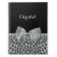 Un cahier d'impression corallien et jaguar noir chic avec un ruban rouge vif attaché à un joli arc. Personnalisez cet accessoire de mode tendance léopard comme poster de animal en ajoutant le nom de votre fille ado. Impression plane, pas arc réel.