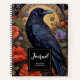 Carnet spiral avec un corbeau noir perché sur une branche entourée de fleurs rouges. L'ambiance gothique cool.