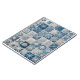 Une courtepointe présente des motifs complexes qui ressemblent à des flocons de neige, chaque bloc présentant des motifs bleus et blancs uniques