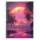 Carnet Coucher de soleil 3d sur la plage. Palmiers rétro