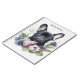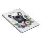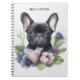 Carnet d'art pour chiens de carlin français noir personnalisé avec un design floral dans un style aquarelle. Avec des fleurs violettes, bleues et roses et un adorable chiot. Papier à lettres idéal pour les amoureux des animaux de compagnie.