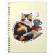 A whimsical and cozy spiral notebook featuring Ruby the calico cat enjoying a book and a warm cup of coffee. Perfect for book lovers, writers, and cat enthusiasts. This Ghibli-inspired watercolor design can be personalized with your own name, making it a unique gift for yourself or a loved one.
