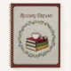 Celebrate the quiet joy of a good story with the "Reading Dreams" journal. This cover features a beautiful faux-embroidery illustration of a stack of vintage-style books topped with a steaming cup of tea and a pair of reading glasses. Enclosed in a delicate circular floral wreath of pink, blue, and yellow buds, the design sits on a realistic linen-textured background that feels warm and inviting.