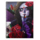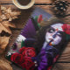 Une fée dans un jour de crâne de sucre de maquillage mort portant tout le violet entouré de roses rouges et crâne