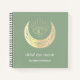 Cahier chic et élégant avec une illustration holographique à faux doré représentant un troisième œil sur un croissant de lune orné de feuilles sur un fond de couleur vert sauge magique.