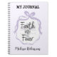 Croix florale avec citation chrétienne carnet / journal. "Foi sur la peur". Croix florale lilas pastel pâle. Conception de thème chrétien.