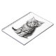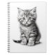 Un rendu numérique d'un croquis crayon d'un petit chaton mignon avec noir et gris sur blanc.