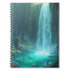A glowing waterfall cascades into a turquoise pool, surrounded by vibrant crystals and lush moss.