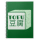 Une illustration d'un cube de tofu dessiné de couleur vert clair. Le texte japonais sur le tofu indique tofu.