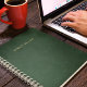 Un cahier élégant présentant une texture de cuir vert foncé avec des accents en écriture dorée. Ce design élégant et sophistiqué offre une sensation premium, ce qui le rend parfait pour noter des notes, des idées ou des pensées importantes de manière raffinée et luxueuse.