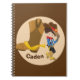 Un joli cadeau de cow-boy customisé avec un enfant de la ferme penché contre une botte de cowboy géante qui tirait son casquette marron avec une étoile jaune. Un grand journal en spirale pour enfants de pays personnalisé avec leur nom.