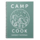 Cuisinier de camp d'été vert et blanc personnalisé avec un nom. Design moderne avec des montagnes, un feu de camp, une forêt, la lune et les étoiles, et une tente de camping.