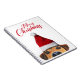Beau joyeux dessin animal de Noël : Curieux chien portant un chapeau de Père Noël. Salutation saisonnière écrite en lettres de typographie moderne.