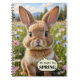 Notebook featuring a cute, wide-eyed bunny nestled in a sunny meadow of daisies and wildflowers. Celebrating the pure joy of springtime. Whether you're jotting down garden plans, keeping a daily diary, or using it for school notes, the playful (customizable) "Did anyone say SPRING?" speech bubble adds a touch of personality and wit to your day.