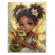 An adorable African-American anime fairy holding her chibi baby dragon personalized notebook