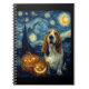 Cute Basset Hound Dog Halloween Jack O Lantern Pumpkin Face Starry Night Van Gogh Style