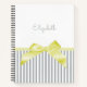 Carnet de taille standard motif à rayures grises et blanches, agrémenté d'une photo d'un joli arc en satin jaune clair. Personnalisez en ajoutant le nom de votre fille préférée. Image imprimée plate, NON apposée avec un ruban réel.