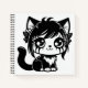 Ce carnet est orné d'un adorable chat avec une coupe de cheveux au bob, des arcs et ce qui ressemble à un peu de peinture de cadavre. Son kawaii et a manga vibes. Le mignon carnet de chaton est parfait pour le travail, l'école, la journalisation ou la tenue d'un journal. Offrez-en un cadeau à un élève pour qu'il retourne à l'école, surtout s'il aime le manga, le métal et les chats. #manga #kawaii #corpsepaint #cuteandcreepy #sweetandspooky #cutecat