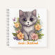 Un chaton gris mignon parmi les fleurs du printemps. Personnalisez le texte pour dire ce que vous voulez.
