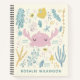 Ce carnet personnalisé mignon présente une illustration fantaisiste d'un crabe entouré de coquillages, de flore, d'étoiles de mer, etc., dans une jolie palette de couleurs pastel rose, bleu et jaune. Personnalisez-le avec votre nom. Super idée cadeau !