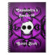 Super mignon crâne gothique Sweet 16 livre de notes en spirale avec un motif damassé en noir sur un arrière - plan de violet avec des rayures de sous-tons roses. Décoré comme un livre d'or, ce carnet est recouvert d'une fine couverture très brillante. Ajoutez votre nom ou modifiez le texte en fonction de vos besoins.