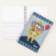 Cute spiral notebook for kids with an cartoon clown elephant . Personalize it with the child's name . Make sure to also choose the type of paper you want inside , the spiral color , and the kind of cover (hard or soft) you want .