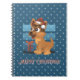 A notebook with illustration of cute German Shepherd with a present on a starry night dark blue background (muted version), illustrated by Radka2D