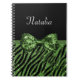 Carnet Cute Green Zebra Print FAUX Glitz Bow avec nom