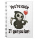 Drôle et adorable Grim Reaper avec ballon coeur romantique dit "Vous êtes mignon, je vous obtiendrai dernier". Parfait pour la Saint Valentin et pour Halloween. Pour les enfants et les adultes.
