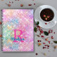 Carnet Cute iridescent unicorn pink faux glitter monogram