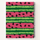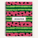 Carnet spiral avec un mignon motif de pastèque. Croûte verte en couches de rayures avec une couche de rayures roses avec des graines noires à l'intérieur. Amusement et design estival. Un rectangle superposé avec votre texte intérieur.