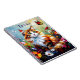 This personalized notebook has cute whimsical colorful folk art cats sitting in flowers and surrounded by butterflies done in an impasto style.