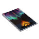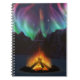 Dans une vallée enneigée, une nuit glacée dans l'hiver, un feu de joie se lève pour faire miroiter les aurores boréales qui remplissent le ciel au-dessus des montagnes lointaines.