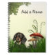 Longue chevelure noir et tan dachshund assis dans l'herbe avec les champignons amoureux de les chiens bordé carnet