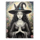 Ce carnet présente une sorcière sereine dans un champ de marguerites qui prend un moment de prière et de gratitude pour ses bénédictions.