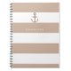 Carnet d'ancrage rayé marron taupe et blanc. Personnalisez le devant avec ou sans texte.