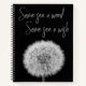 Élégant carnet de motivation avec une photo macro originale en noir et blanc d'un beau dandelion avec une citation inspirante dans une élégante police de calligraphie blanche qui dit "Certains voient une mauvaise herbe, Certains voient un voeu"