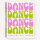 Carnet personnalisé pour danseurs avec typographie rétro en rose bubblegum et vert citron.