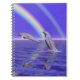 Carnet avec mon artwork numérique original de deux dauphins heureux sautant de l'eau, suivant un arc-en-ciel.