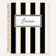 Améliorez votre journalisation ou votre expérience de prise de notes avec notre carnet de couverture rigide Emma Stripe Collection personnalisé avec votre nom. Doté de rayures noires et blanches classiques aux accents kaki, ce carnet polyvalent propose des options de personnalisation telles que le journal à puces, les lignes de règle larges ou collégiales, les pages de liste de contrôle, les pages de recettes, et plus encore. Avec sa couverture rigide durable, c'est le mélange parfait de style et de fonctionnalité pour toute tâche à portée de main. Faites votre marque avec cet essentiel chic et organisé.