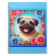 Ce carnet d'utilisation quotidienne dispose d'un Carlin gai, entouré de fleurs vives.