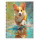 Lumineuse et joyeuse, cette couverture de carnet présente un corgi ludique qui s'écrase dans une eau peu profonde avec une énergie infinie. Les couleurs vibrantes et le style peintre captent la joie et le plaisir, ce qui en fait le compagnon parfait pour appréhender des pensées heureuses, des notes quotidiennes ou des idées créatives.