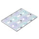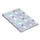 Quatre carrés de bleu pâle et de violet sont décorés de bonhommes de neige en chapeaux et vêtements d'hiver, comme des toboggans, des foulards et des mitaines. La couture blanche ajoute une touche décorative, donnant au motif répétitif l'aspect d'une courtepointe, créant une sensation de douceur pour l'hiver.