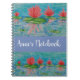Dessin de fleurs de lotus rose et bleu, art naïf. Carnet personnalisé.